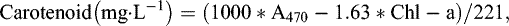 where A665, A652 and A470 are the absorbance readings at 665, 652 and 470 nm.